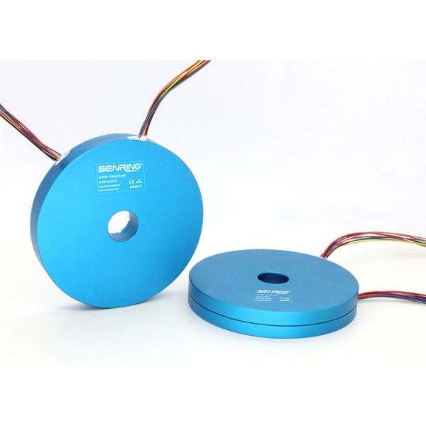 SenRing K225 series pancake slip ring is a very thin slip ring with a bore diameter of 25.4mm and a thickness of 22mm. There are various specifications of outer diameter from 92mm to 460mm. The K225 series pancake slip ring is mostly used in equipment with very limited installation space and strict restrictions on slip ring thickness (height) that can expand horizontal space. The pancake slip ring adopts a special vacuum impregnation process and precious metal material for the brush, which has high stability, ensuring excellent electrical transmission performance and rotation performance. Compared with similar products, SenRing pancake slip ring has the main features of low torque, low wear, low electrical noise, and ultra-long life. The standard model supports 2-48 channels of 2-20A current/signal.